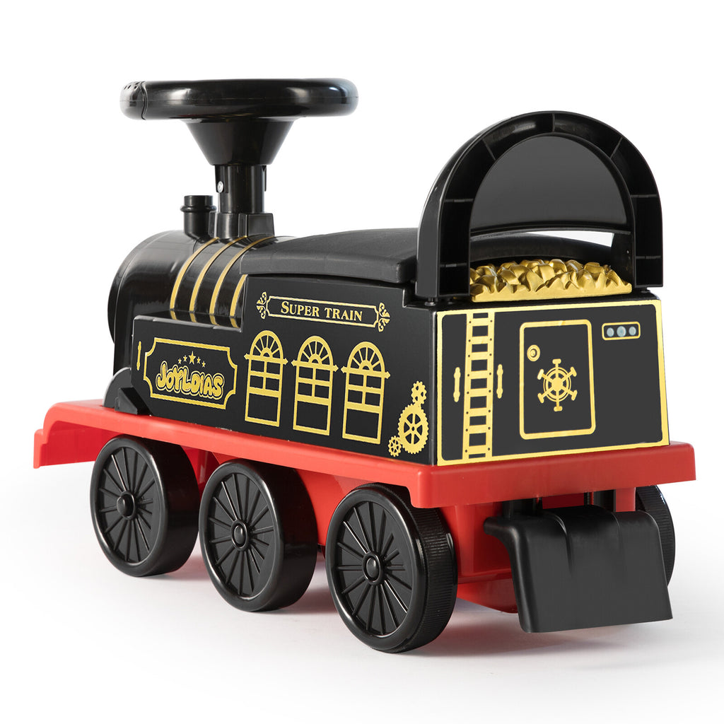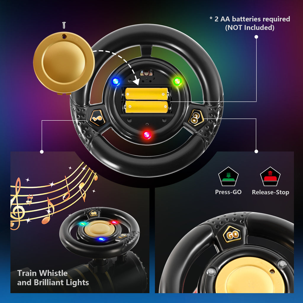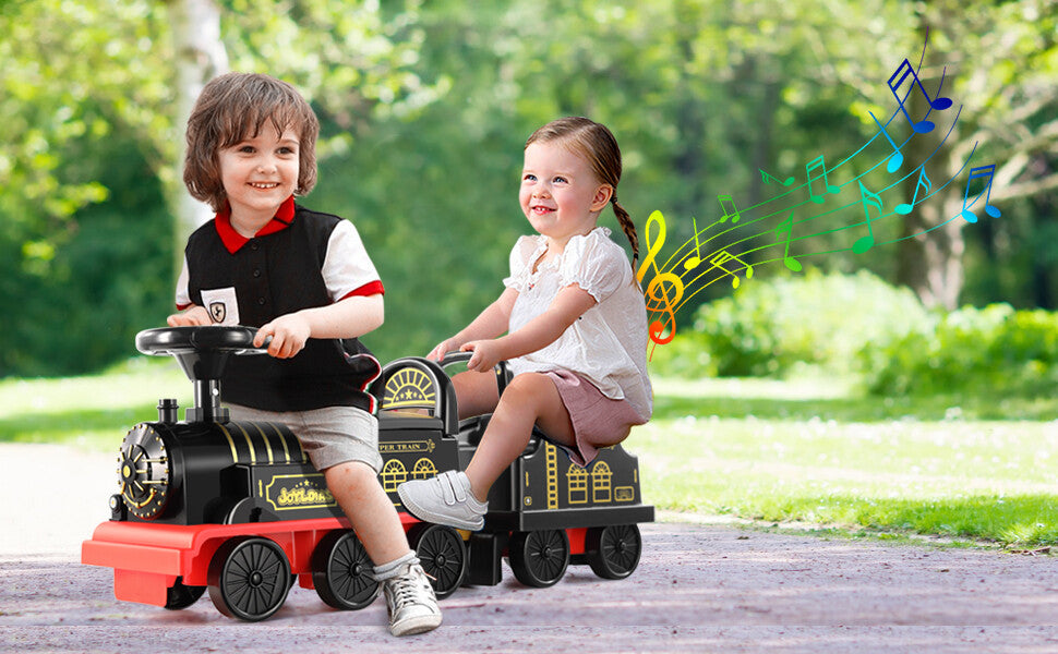 Bold and sleek, the black ride-on train exudes timeless style and adventure-ready spirit. Its striking color contrasts beautifully with the vivid flashing lights, making your child the star of the neighborhood as they steer their cool, classic black car-like ride-on truck. This variant complements any outfit and outdoor setting, giving a stylish flair to every excursion.