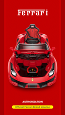 True Ferrari 488 brilliant details include 2 speed Ferrari gated throttle shifter, the REAL authentic Ferrari engine noises, plus on the dashboard is a button to press allowing you to rev your engine at will, carbon fiber style steering wheel drives forward, backwards, turns left and right, working stereo with MP3 hookup, working headlights, turn signals, upgraded 12 Volt power motor reaches speed of about 5mph, authentic Ferrari logo and ornaments, adjustable seat belt, MP3/iPhone input, working stereo with volume control for added realism.
