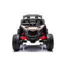 The Can Am Maverick 24V UTV offers young adventurers aged 36-96 months the ultimate ride-on experience. This officially licensed electric UTV comes with four powerful 200W motors and a robust 24V battery, delivering a top speed of 5MPH. It provides up to 50 minutes of fun on a full charge. This ride-on UTV stands out with its 2.4G remote parental control, three-speed modes, and manual 22/44 switch for various terrains. The safety features include a two-point seat belt, emergency stop button, and 30 meters of remote control override. Packed with entertainment options like MP3/USB inputs, radio, Bluetooth, and speakers, alongside bright LED lights and a button start, it's designed for endless fun and safe rides.