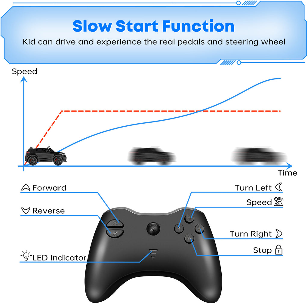 Parents can take control with the Bluetooth remote control that features one-to-one pairing, giving you priority access to drive the ride-on car remotely when needed. This safety-first design allows you to park or stop the car quickly, ensuring your child’s protection at all times. For children eager to steer independently and develop coordination skills, manual mode offers the full thrill of driving by themselves, complete with a soft start that prevents sudden jerks and surprises. Plus, the built-in safety belt adds an extra layer of security, so parents can relax while their little drivers enjoy the ride.
