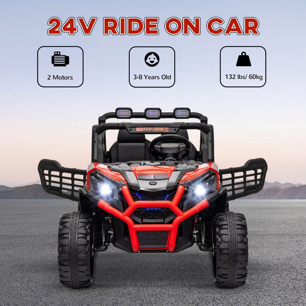 Ready to ignite your child’s imagination and fill your backyard with laughter? Meet the ultimate 24-volt double-seat ride-on truck, designed for two junior explorers to discover new terrains side by side. This rugged UTV-style ride-on truck brings realistic features, parent-controlled safety, and a burst of entertainment straight to your driveway. Whether your little ones are cruising on grass, gravel, or smooth pavement, they’ll experience hours of thrilling, imaginative play on this powered adventure buddy.