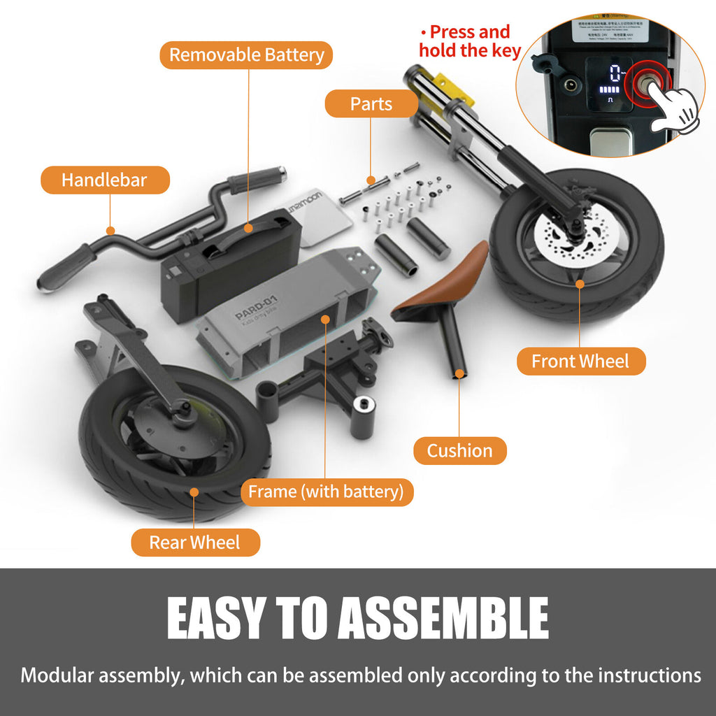 - Dual Functionality: Transforms from a manual scooter to an electric motorcycle.