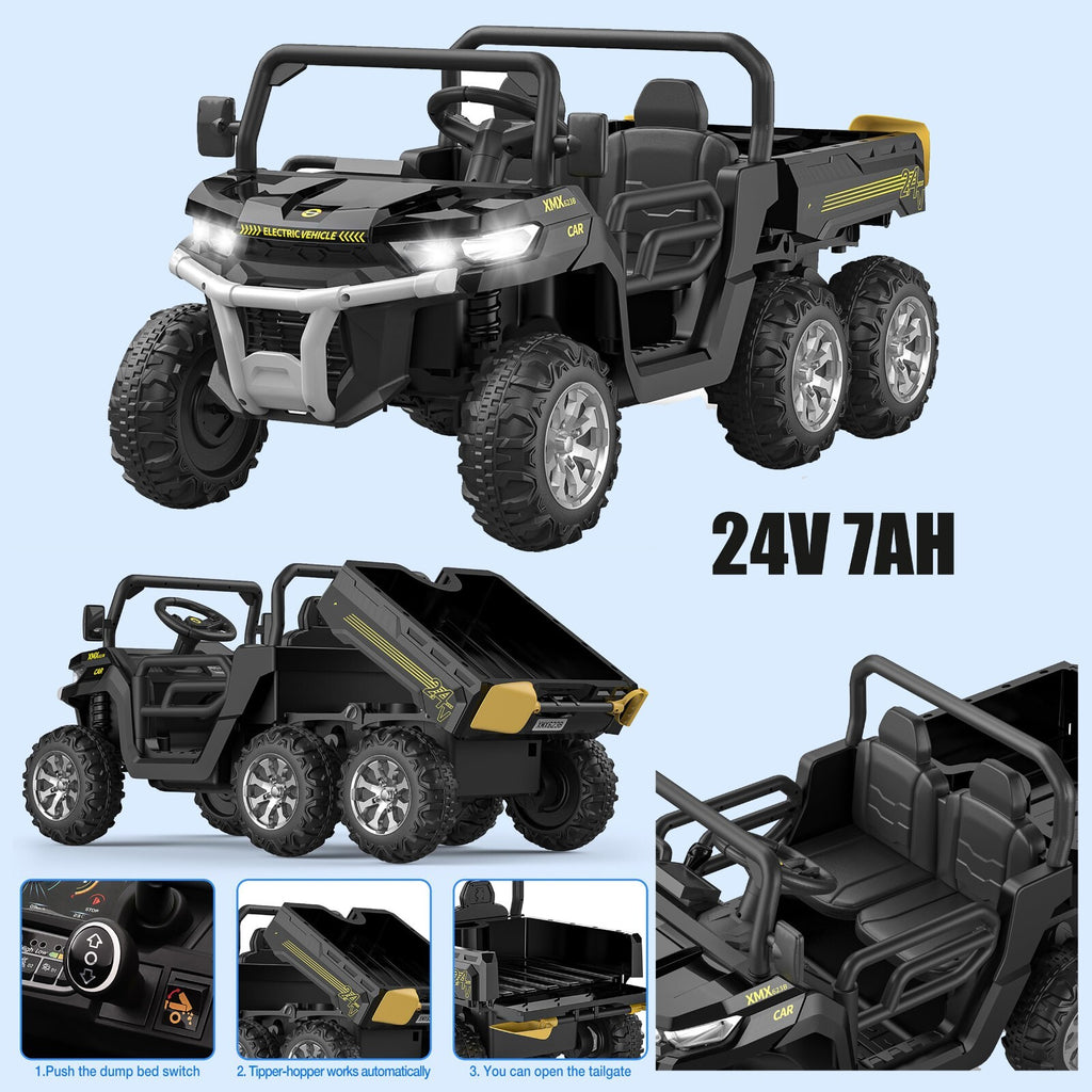 24V Electric 2-Seater Kids Ride-On Dump Truck 4WD UTV with Parental Remote and MP3 Player