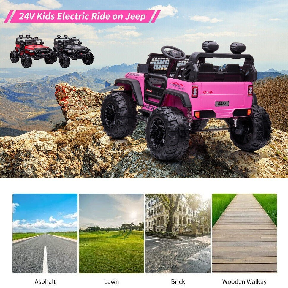 • Powerful 24V Battery & Motors: Strong motors with large wheels offer smooth rides across multiple terrains.