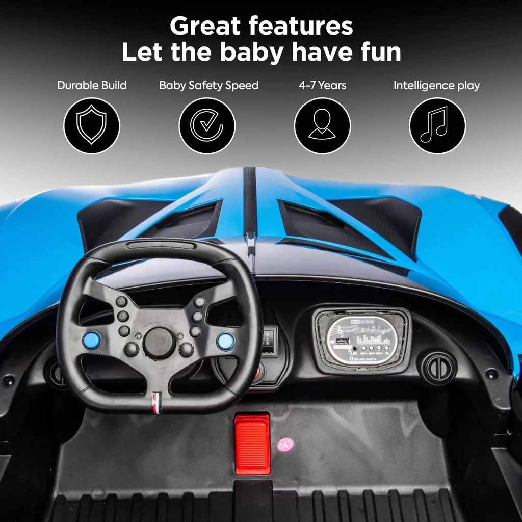 • Sleek Bugatti-Inspired Design: The authentic contours, lines, and LED headlights give it the unmistakable aura of a high-end sports car. Your child will feel like a champion driver every time they climb in.