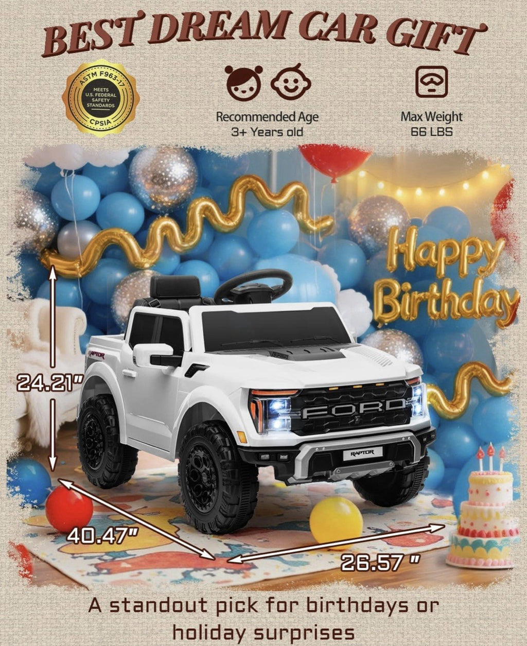 Whether you’re shopping for birthdays, holidays, or simply a special “just because” gift, the Ford F-150 Raptor 12V ride-on truck delivers endless fun and developmental benefits. From the built-in safety features to the immersive audio experience, every detail has been carefully crafted to provide a thrilling, secure ride. Give your child the gift of adventure and watch as their imagination takes the wheel.