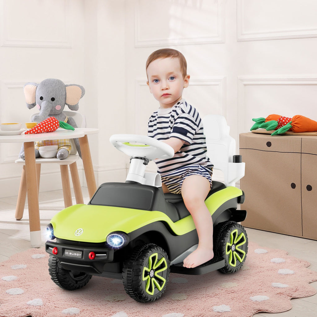 Searching for a standout baby shower or birthday gift? Our Volkswagen Green Ride-On Push Car will thrill both kids and parents. Imagine the excitement as the gift is unveiled: a chic, licensed Volkswagen design with headlights that glow, music that plays, and storage perfect for treasures collected on every neighborhood expedition.
