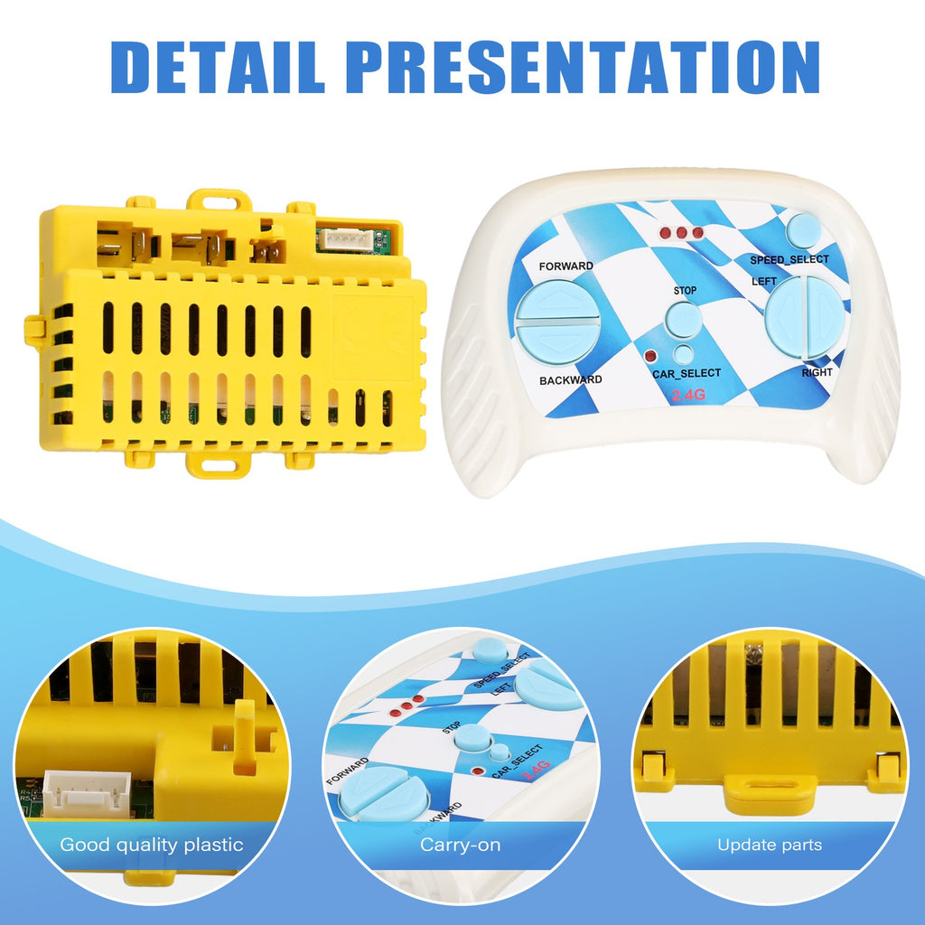 This versatile control box is ideal for a wide range of children’s ride-on cars and trucks operating on a 24V power system. Whether your child’s vehicle is a sleek mini car or a rugged toy truck, this receiver and remote combo delivers consistent performance and control. It’s a smart investment to breathe new life into an existing ride-on vehicle or to upgrade a gift for any young driving enthusiast.