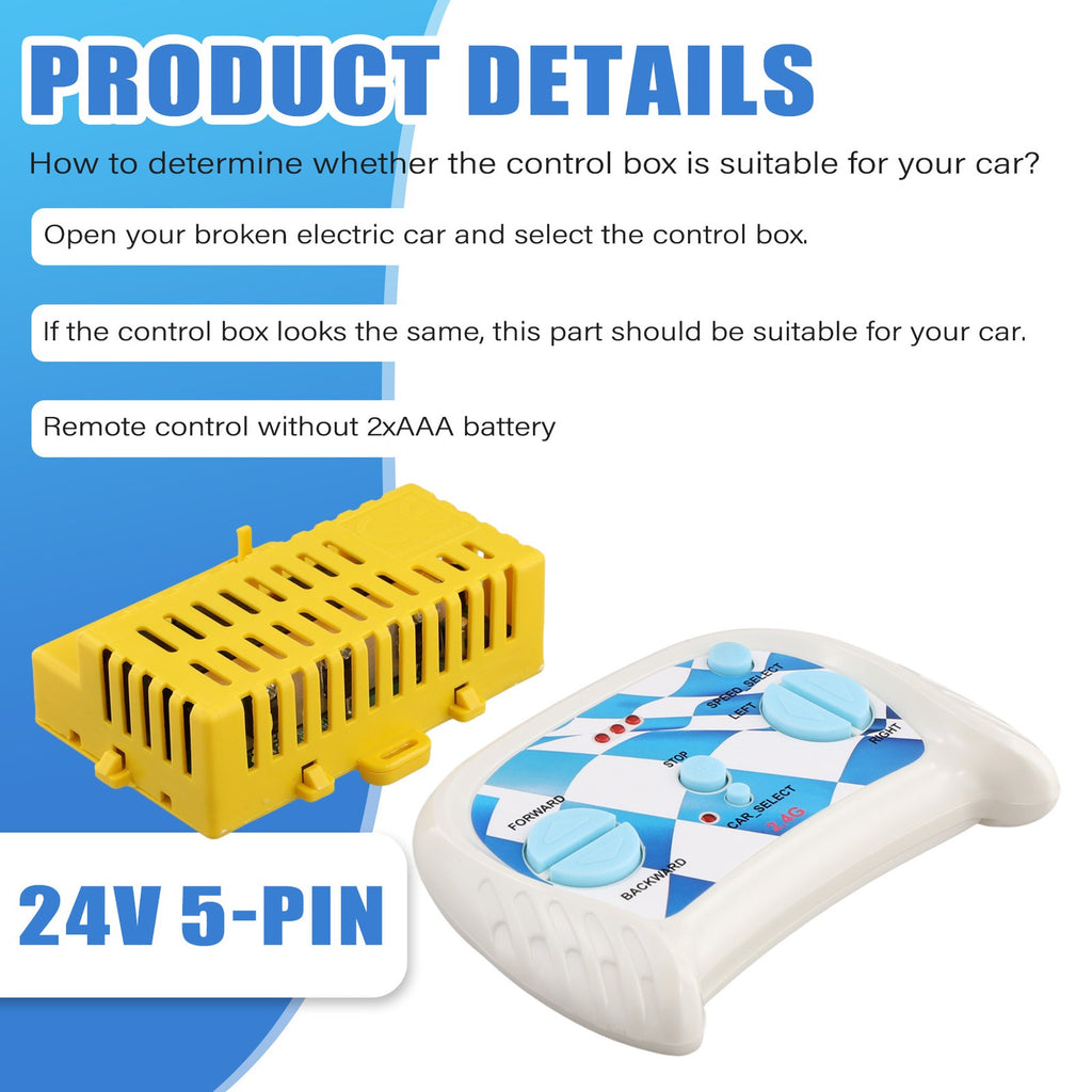 - Powerful 24-Volt System: Designed specifically for 24V children’s electric vehicles, this control box delivers the robust energy needed to power larger, more dynamic ride-on cars and trucks, providing longer playtime and exciting speed capabilities.