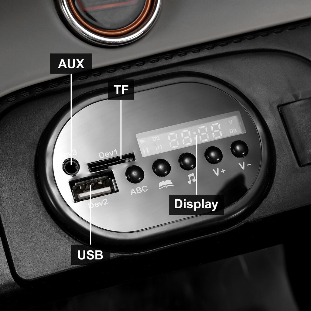 Riding this electric car is more than just steering and pedaling—it’s an immersive journey filled with sound and imagination! The dashboard lights up with backlighting, bringing a touch of realism and excitement to the driving experience. Your child can enjoy a rich variety of audio options thanks to the integrated TF card slot, 3.5mm AUX input, and USB interface. This means endless hours of entertainment from nursery rhymes, story-telling, or even English-learning modes, all easily controlled by two buttons right on the steering wheel. This interactive feature not only makes driving fun but also educational and engaging.