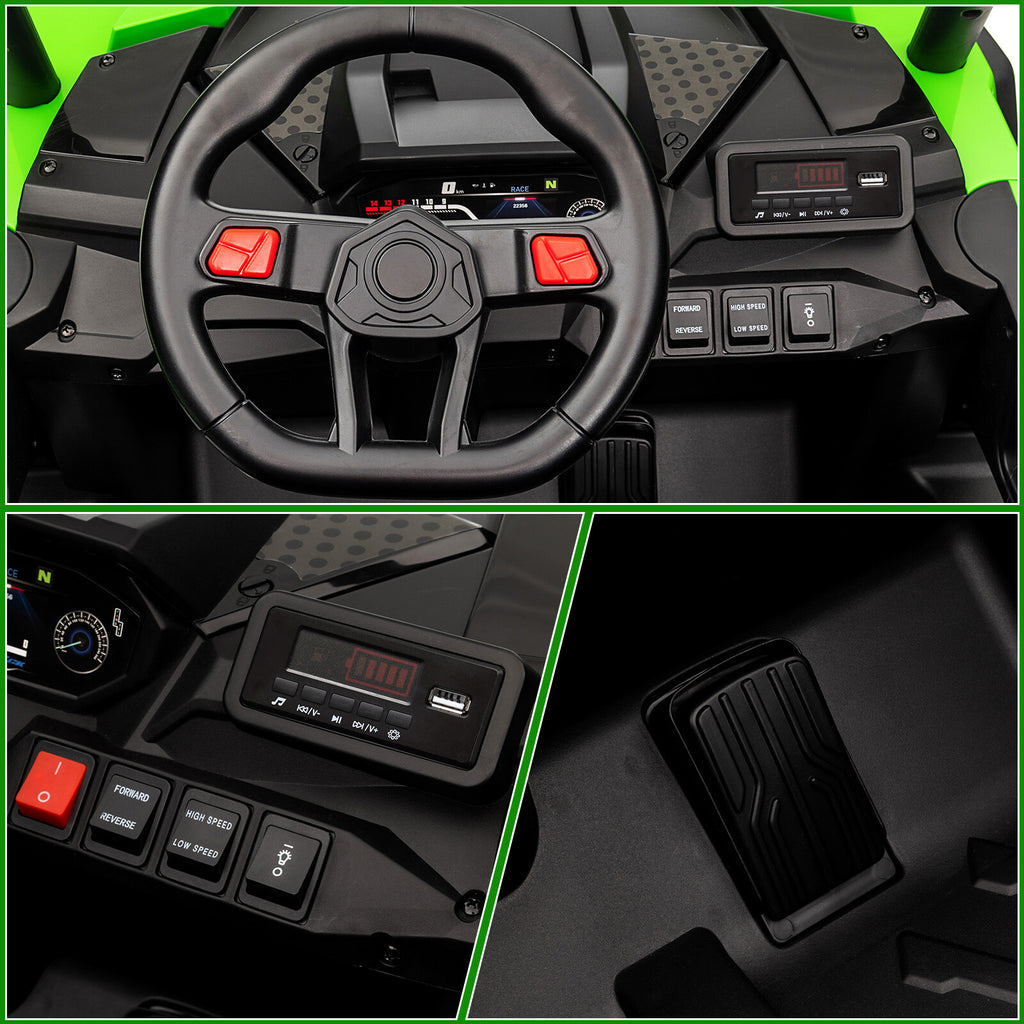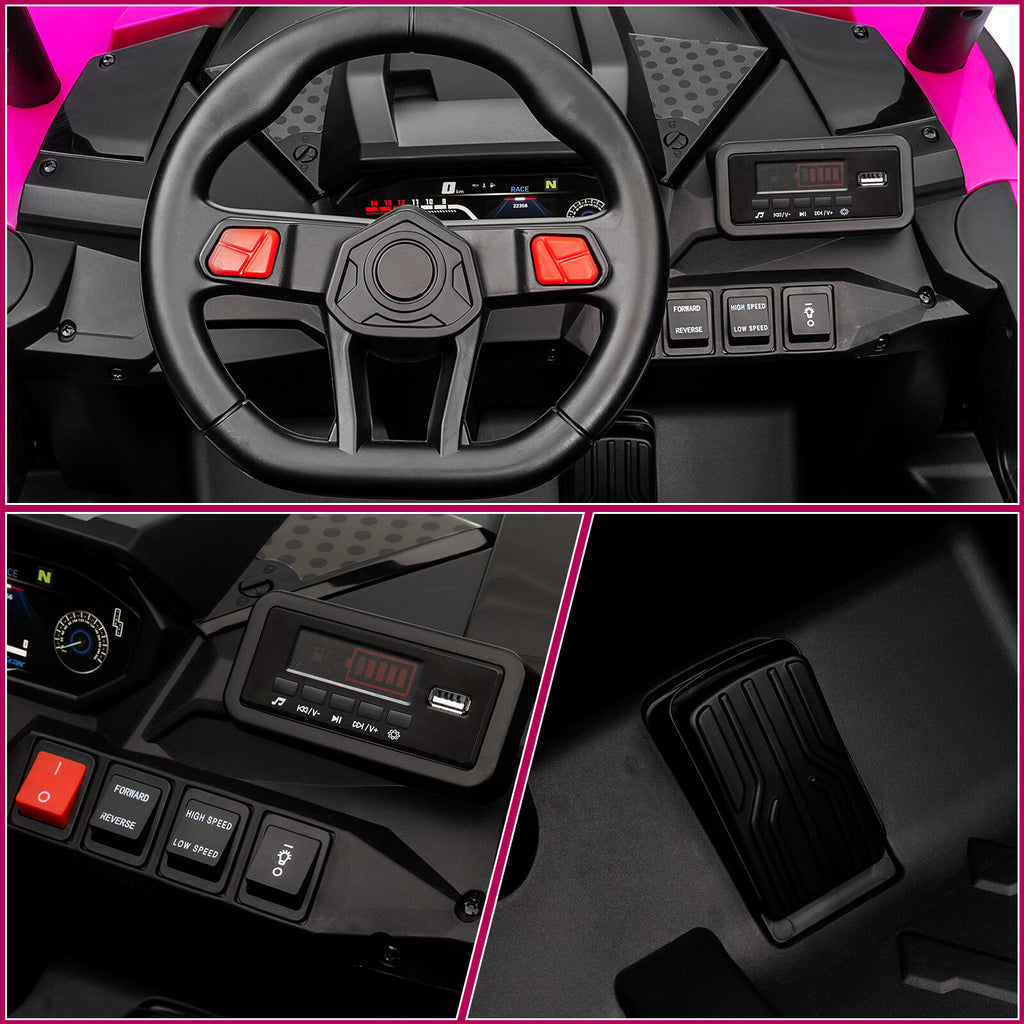 Ready to gift your child a world of excitement? This off-road ride-on UTV is the perfect choice for young drivers who dream of conquering new terrain and blasting their favorite tunes as they go. Let your child’s imagination run wild, knowing you’ve chosen a ride-on truck that blends thrilling design, robust performance, and trusted safety features in one incredible package.