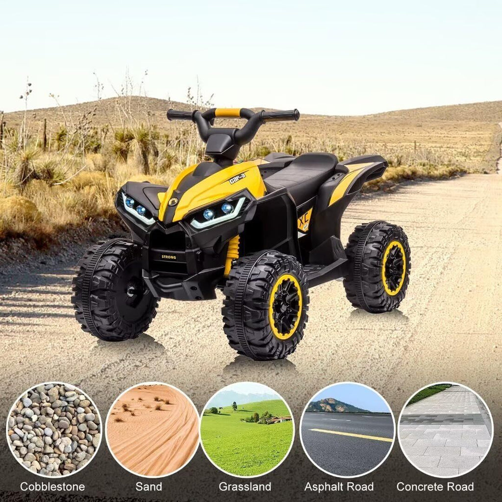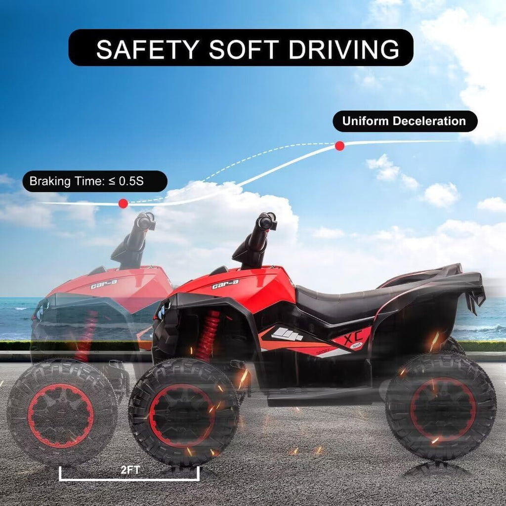 Designed with versatility in mind, the ATV’s wear-resistant, treaded tires confidently roll over a variety of surfaces, from sandy beaches and rubber tracks to cement sidewalks. This adaptability ensures your child’s ride-on fun isn’t confined by where you live or play. Whether it’s a backyard adventure or a trek through the neighborhood park, your youngster can enjoy a stable, smooth ride while exploring the world around them.