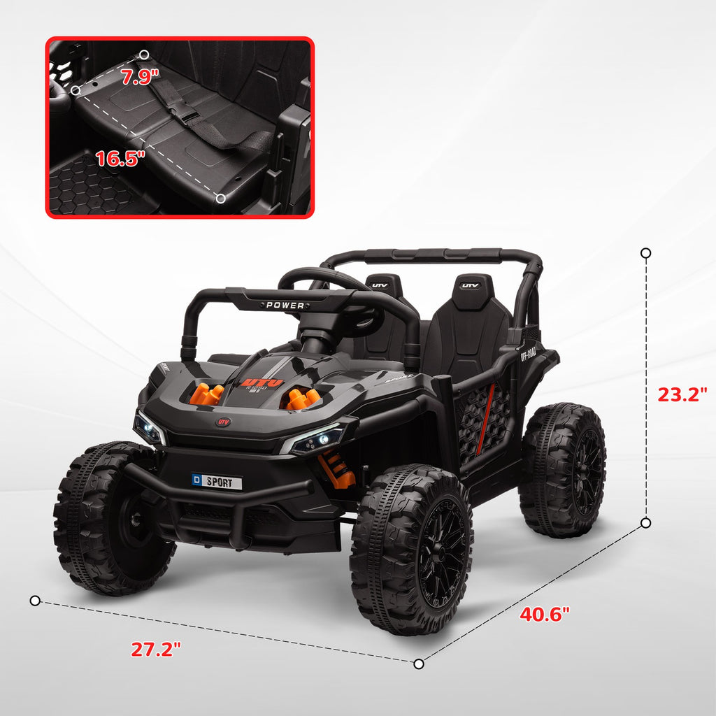 Get ready to ignite unforgettable playtime adventures with our 12V Dual Motor Kids Electric Ride-On UTV Toy. Crafted to thrill young explorers, this rugged ride-on promises endless excitement, whether they’re roaring across the backyard or cruising down the driveway. You’ll marvel as your little one grips the steering wheel, flips the switches, and commands this pint-sized powerhouse, discovering the joy of independence while you enjoy peace of mind with built-in safety features.