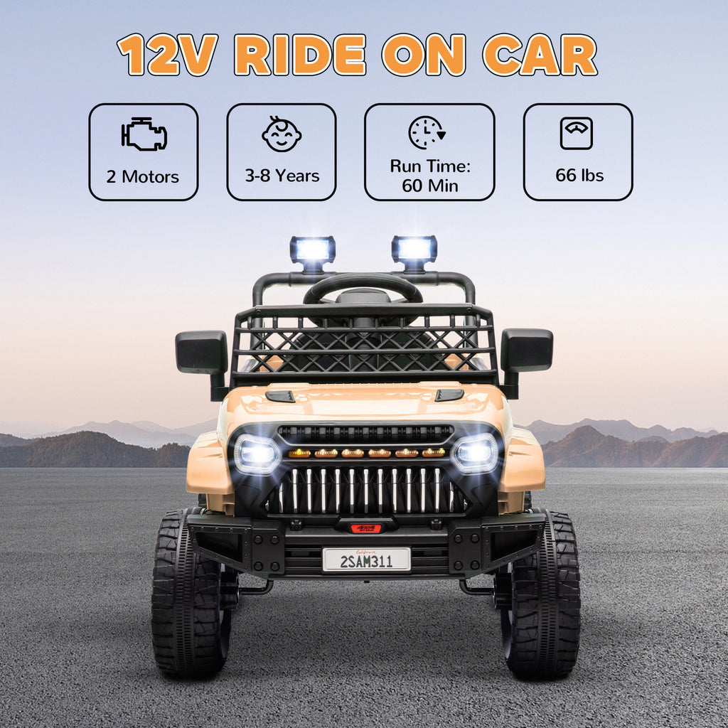12V Ride-On Truck with Spring Suspension, Remote Control, Khaki
