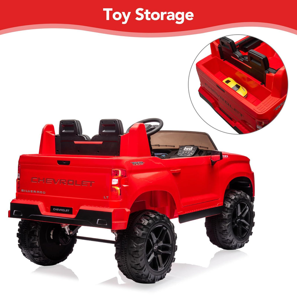 The ride-on Chevrolet Silverado doesn't just look the part—it offers a multi-functional control console designed for effortless, kid-friendly operation. Starting the truck is as simple as pressing one key, and the clear dashboard and intuitive steering wheel ensure your child feels like a true driver from the moment they hop in. The sound system adds another layer of excitement, featuring preset music, a horn, engine sounds, and even an MP3 player that connects via USB or phone, so your child’s favorite tunes can accompany every adventure.