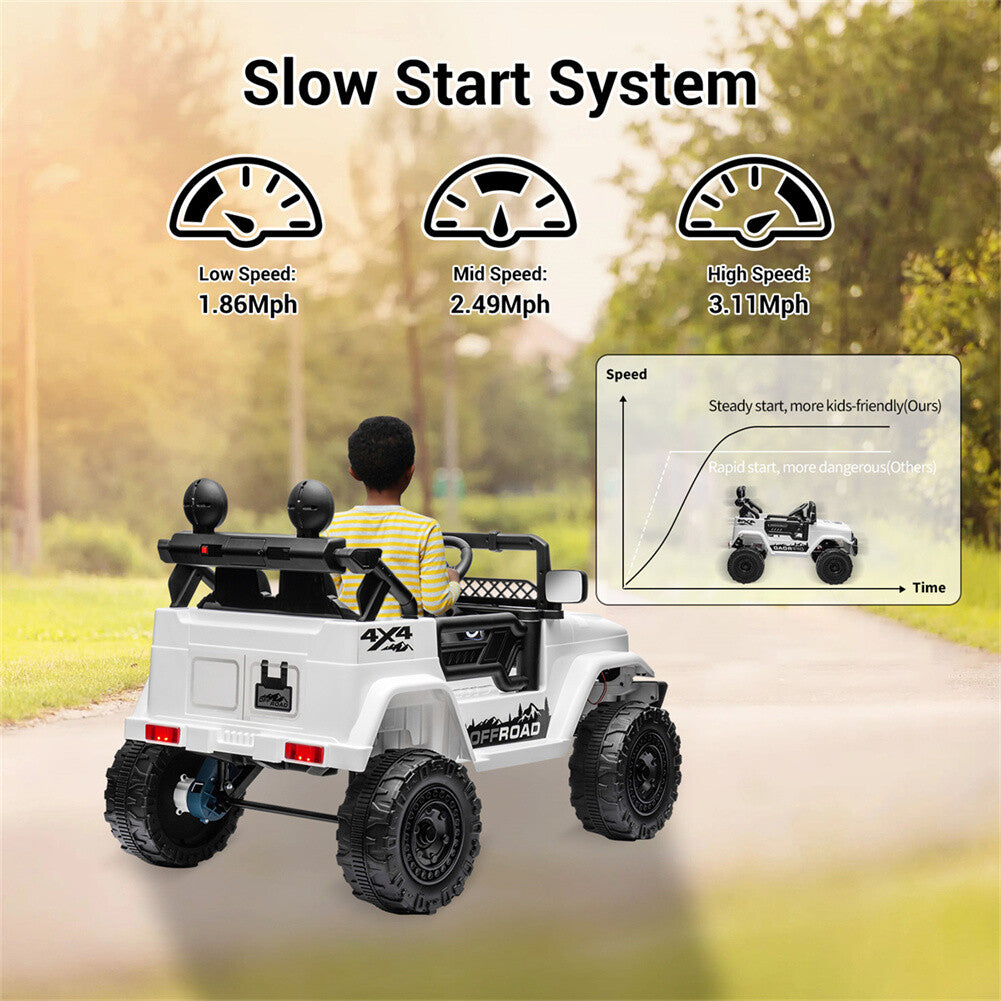 Looking for a gift that will bring lasting joy and excitement? This 12V ride-on truck is an ideal present for birthdays, Christmas, Thanksgiving, or just because. Its slow start function ensures a safe and smooth acceleration, making it suitable for young drivers just starting to explore the world of ride-on vehicles. The charming white color adds a stylish touch that kids will adore.