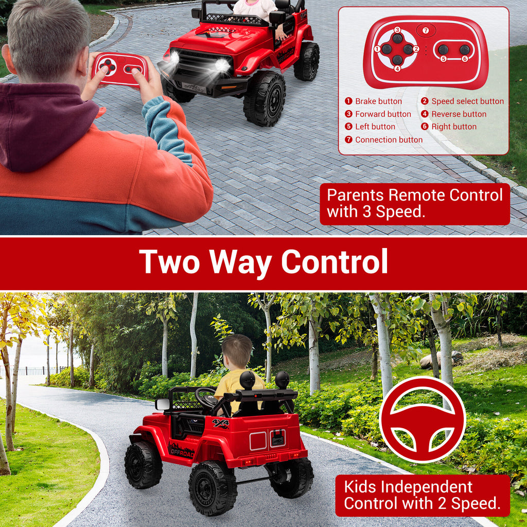 Whether your child is taking the wheel solo or alongside a friend, this 2 seater ride-on truck offers an incredible combination of realism, safety, and entertainment. Parents can relax knowing the remote control offers total command over the vehicle when needed, preventing accidents before they happen. The robust and kid-friendly design ensures that this ride-on toy will be a beloved part of your family’s outdoor fun for years to come.