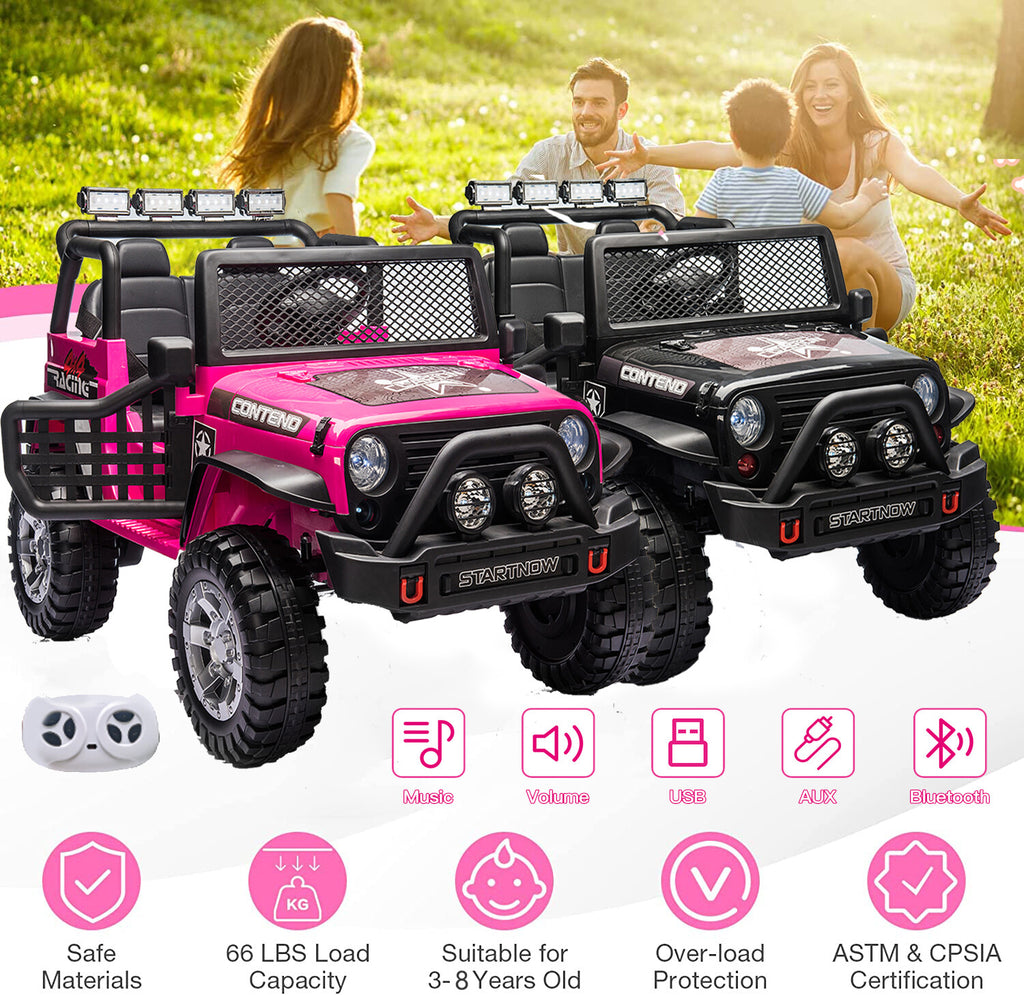 For those who prefer a sleek and bold look, the black variant of this 2 seater ride-on truck car exudes a cool, rugged charm. It’s a standout choice for boys and girls alike who want their electric truck to look as dynamic and daring as their imagination. All the same thrilling features and safety designs make this black truck a perfect companion for exciting outdoor expeditions.