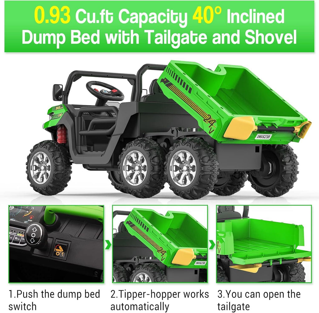 Prepare to ignite your child's imagination and sense of adventure with the incredible Kids 2 Seater Ride-On Car 24V Electric Dump Truck 4WD Off-road in a vibrant green shade! This ride-on truck is not just a toy; it’s a gateway to exciting outdoor adventures, teamwork, and endless hours of fun for your little drivers. Designed especially for young explorers from toddlers to early grade school kids, this electric dump truck blends thrilling features, advanced controls, and safety into one unforgettable ride-on experience.