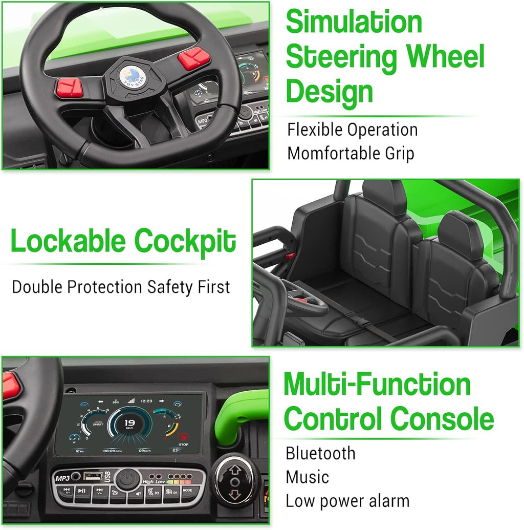 This ride-on truck is thoughtfully crafted with two roomy seats, allowing your children to share the thrill of driving together. Each seat is equipped with a safety belt to keep your little ones secure as they embark on their off-road journeys. The ability to enjoy this ride-on toy side-by-side encourages social play and teamwork, making every ride a memorable bonding experience.