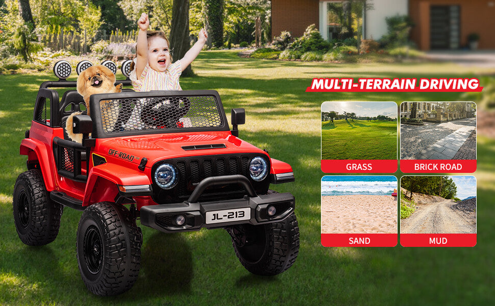 The off-road styling is completed by grid-patterned windshields, evoking the spirit of true adventure trucks. And to keep the fun going, a built-in USB port and TF card slot allow you to connect devices and play favorite MP3 tunes, stories, or songs, transforming every ride into an entertaining journey.