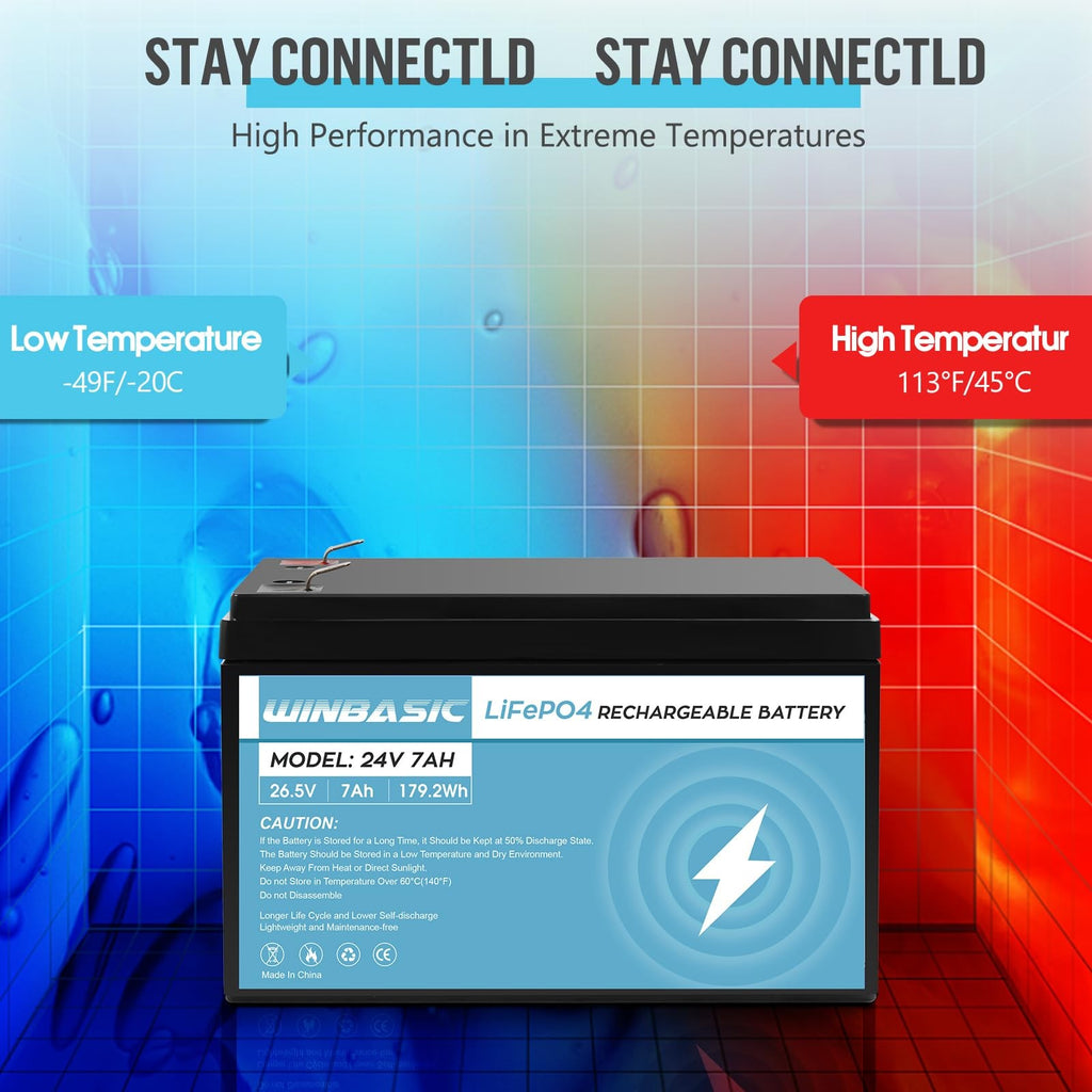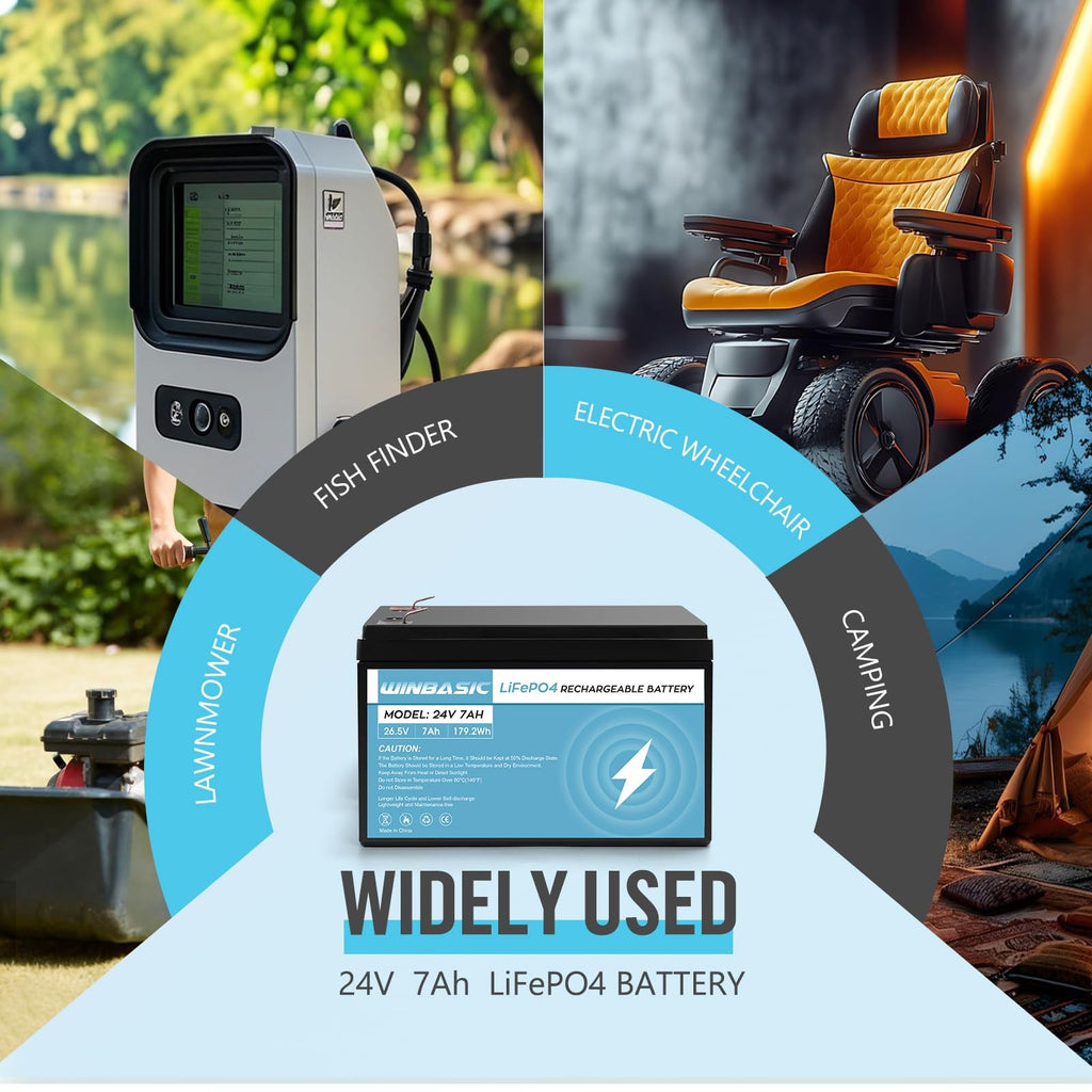 24V 7Ah LiFePO4 Rechargeable Lithium Battery 25.6V 179.2Wh Deep Cycle LF8011
