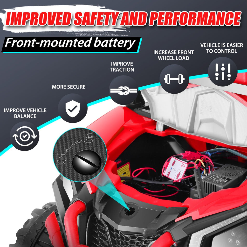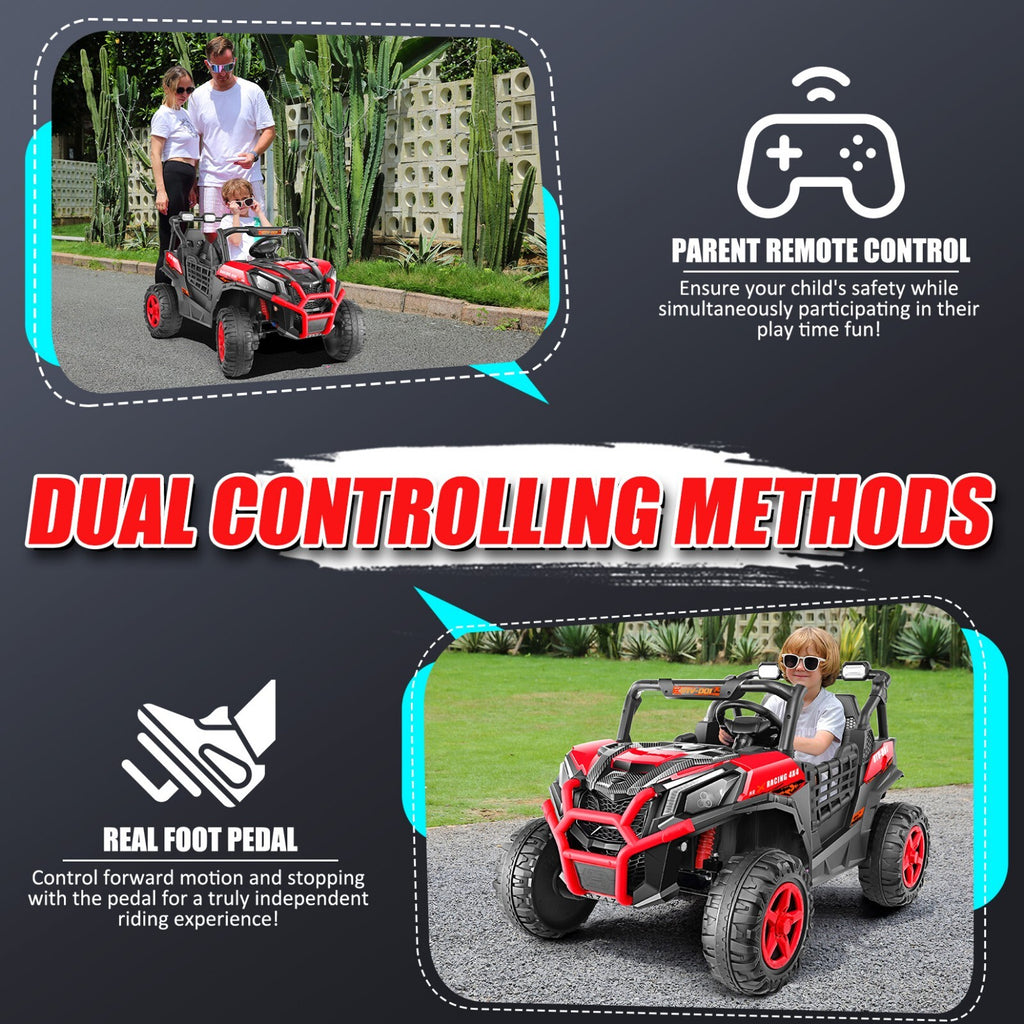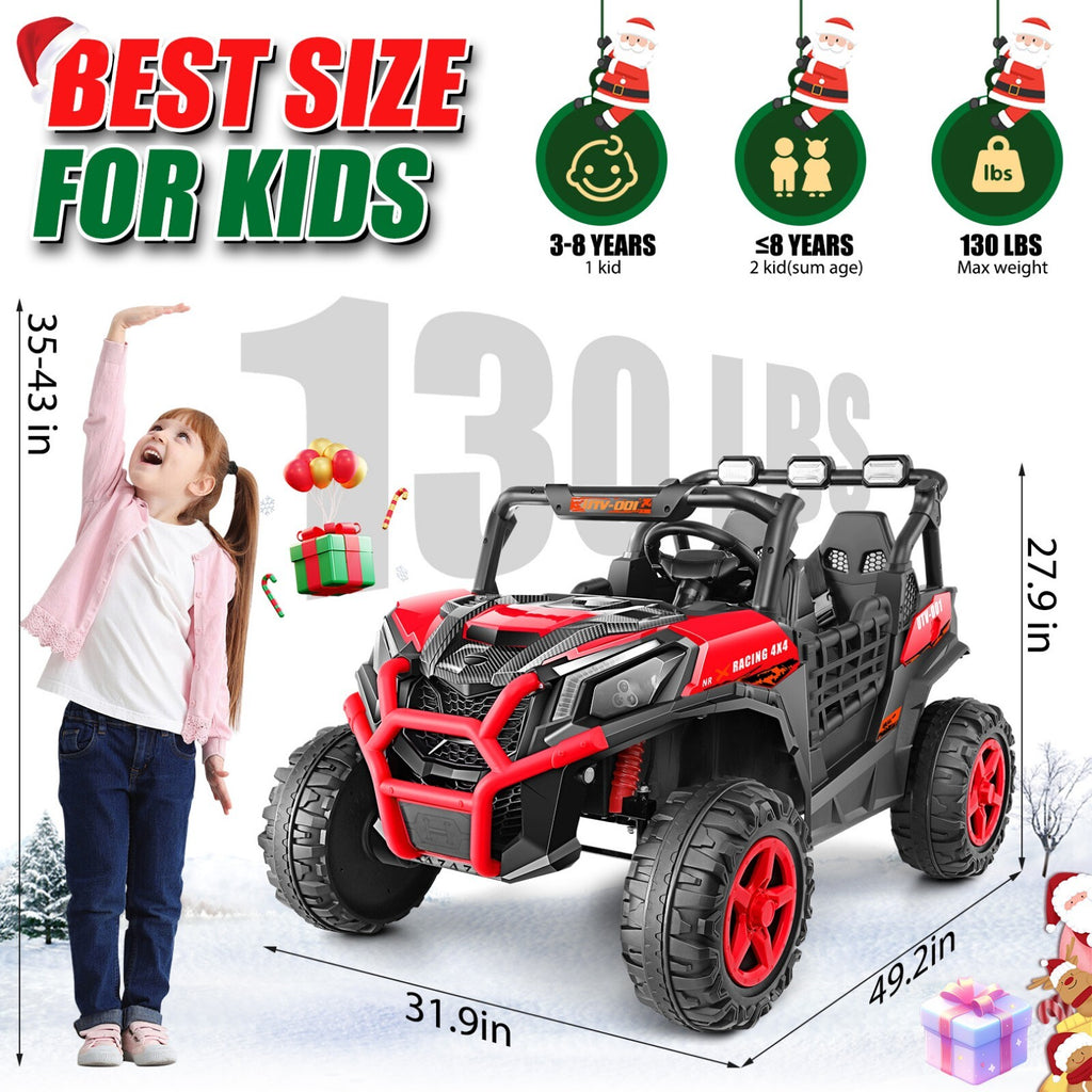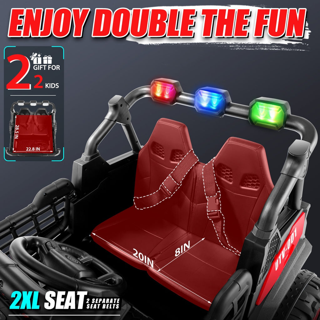- Dual-Seat Design for Shared Adventures: With a spacious 20-inch wide seat, this ride-on car comfortably fits two children, allowing siblings or friends to embark on thrilling escapades together. The generous seating space encourages social play and shared memories, helping kids bond as they steer their own truck.