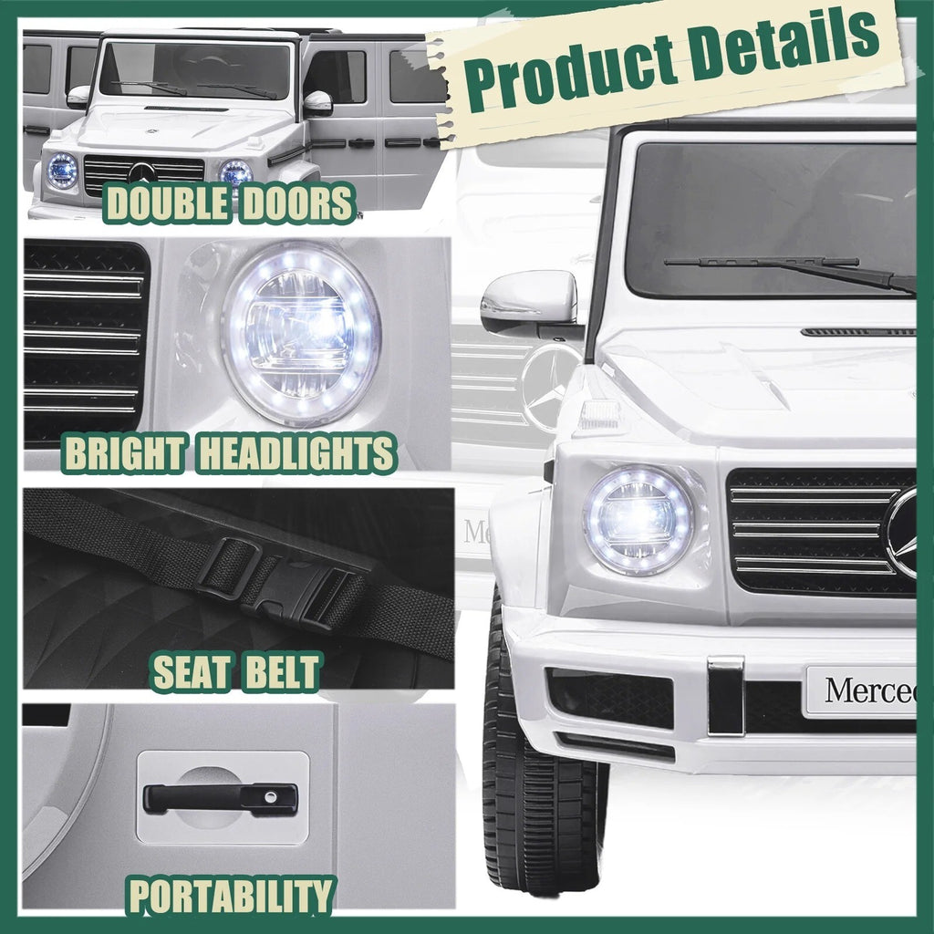 - 1 x Licensed Mercedes-Benz G500 24V Kids Ride-On Car (White)