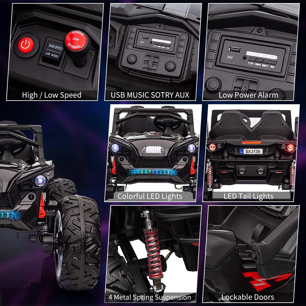 Perfect for birthdays, holidays, or just because your child deserves a taste of freedom and exploration, the 2 Seaters 24V Ride-On UTV is the ultimate gift that combines the excitement of a ride-on vehicle with the practicality of parental control and safety features. Watch as their eyes light up with joy while they cruise in style, creating memories and stories to tell for years.