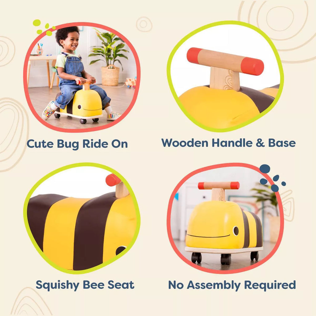 One of the standout features of the Boom Buggy is its smooth, rotating wheels. Designed to spin a full 360 degrees, these wheels allow your child to glide effortlessly in any direction, turning their ride-on into a lively, bumble-bee-like experience. This dynamic movement fosters creativity and freedom, letting your toddler steer their course and invent new adventures with every turn. Gone are the days of rigid rides—this bee ride-on offers the kind of mobility that sparks giggles and excitement with each twist and whirl.