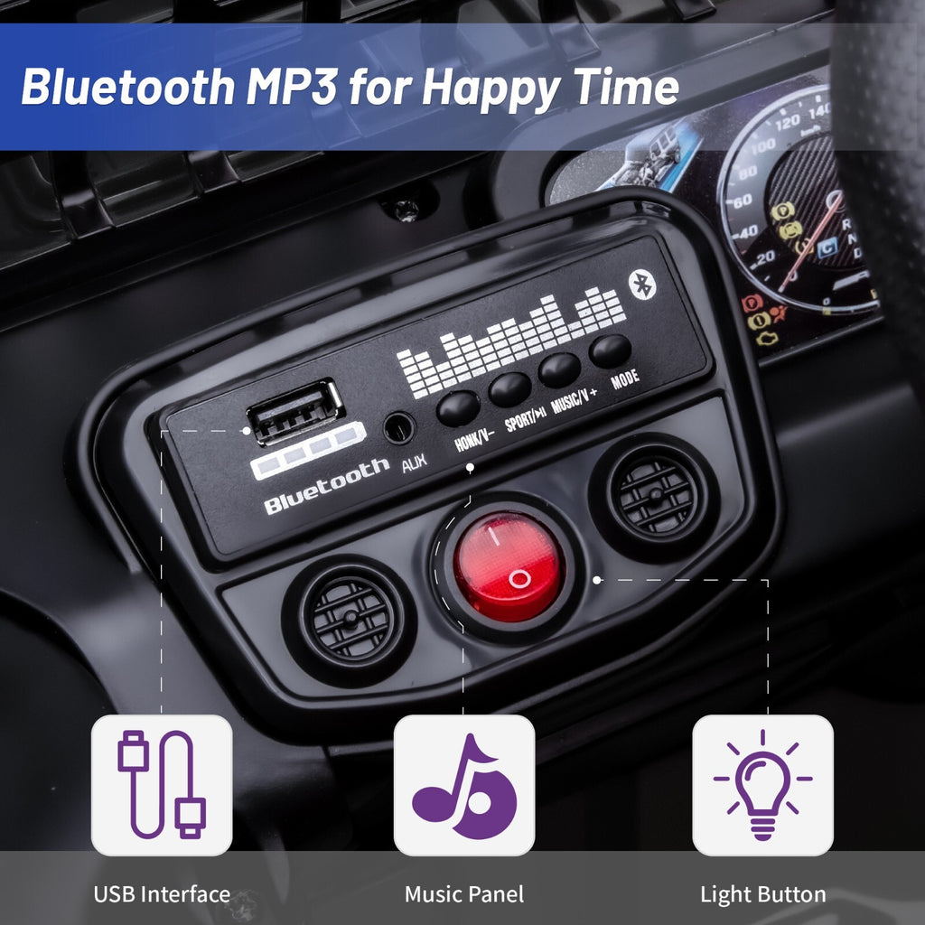 - LED Lights & Sound Features: Realistic headlights switch on with a pull of the ignition key. Plus, with Bluetooth®, MP3, AUX, and SD card ports, your child can blast their favorite tunes while cruising.