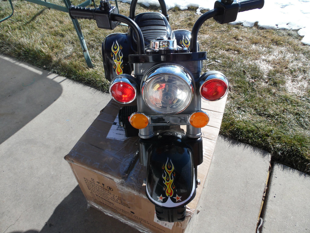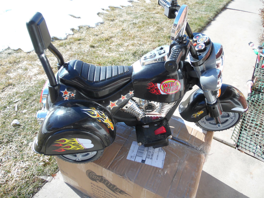 This particular Black Lil' Rider has been carefully inspected and is in good working condition, showing only minor signs of previous use such as light marks from handling—not scratches or dents that affect its performance or appearance. The battery has been tested, and after charging, the three wheeler powers forward and backward seamlessly, with all sound effects functioning properly. Please note, the exact battery life may vary as it is sold as-is, and the battery’s full longevity cannot be guaranteed.