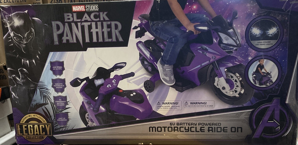 Unleash the Power of Marvel with the Black Panther 6V Battery Motorcycle Ride-On!