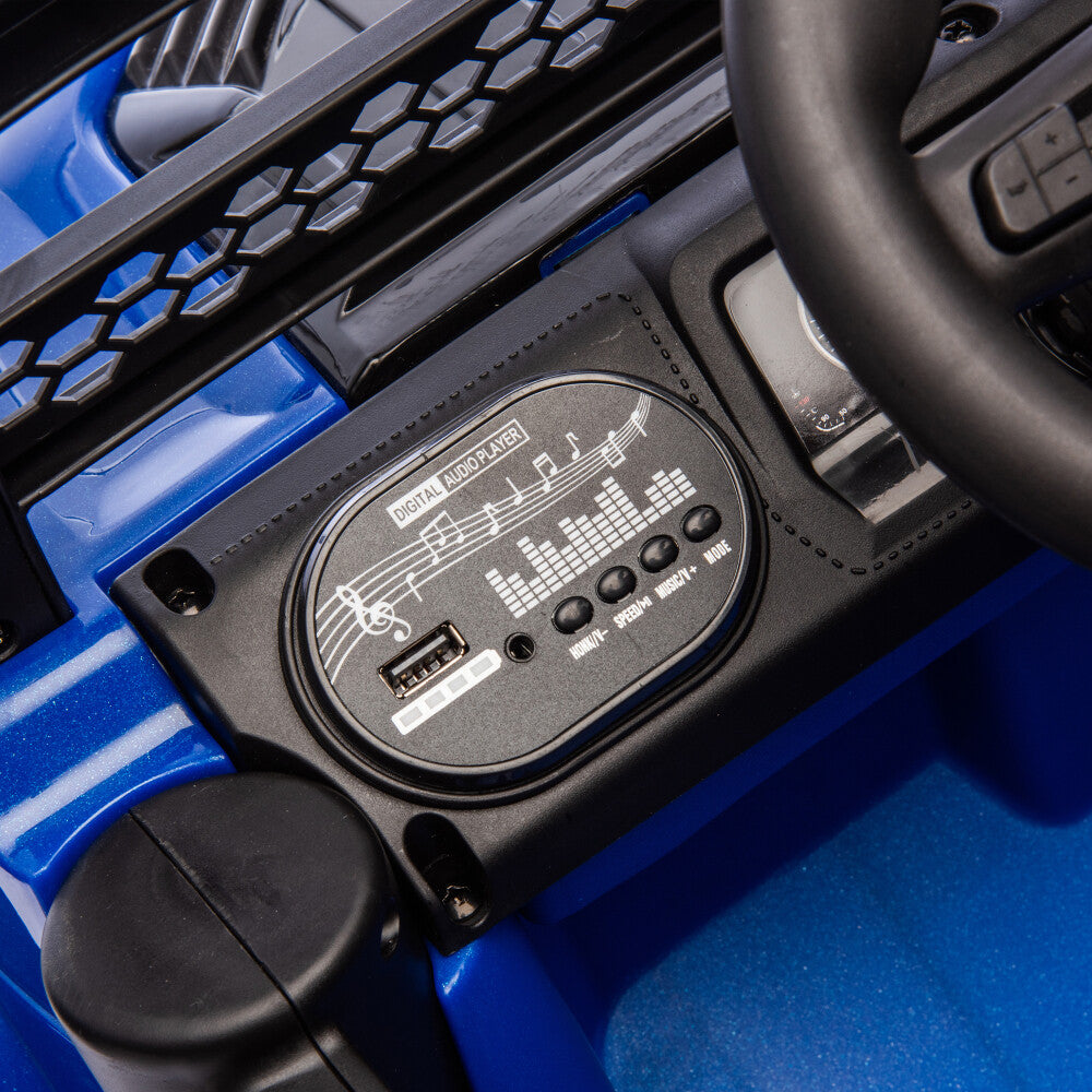 Light up playtime with the professional-grade searchlight and vibrant LED lighting system. The bright front searchlight lets your child extend their adventures into the evening safely, illuminating their path with clear visibility. Meanwhile, the colorful LED lights create a festive, eye-catching atmosphere that not only enhances safety but also makes the truck stand out during daytime escapades, adding an extra layer of excitement and style to the ride.