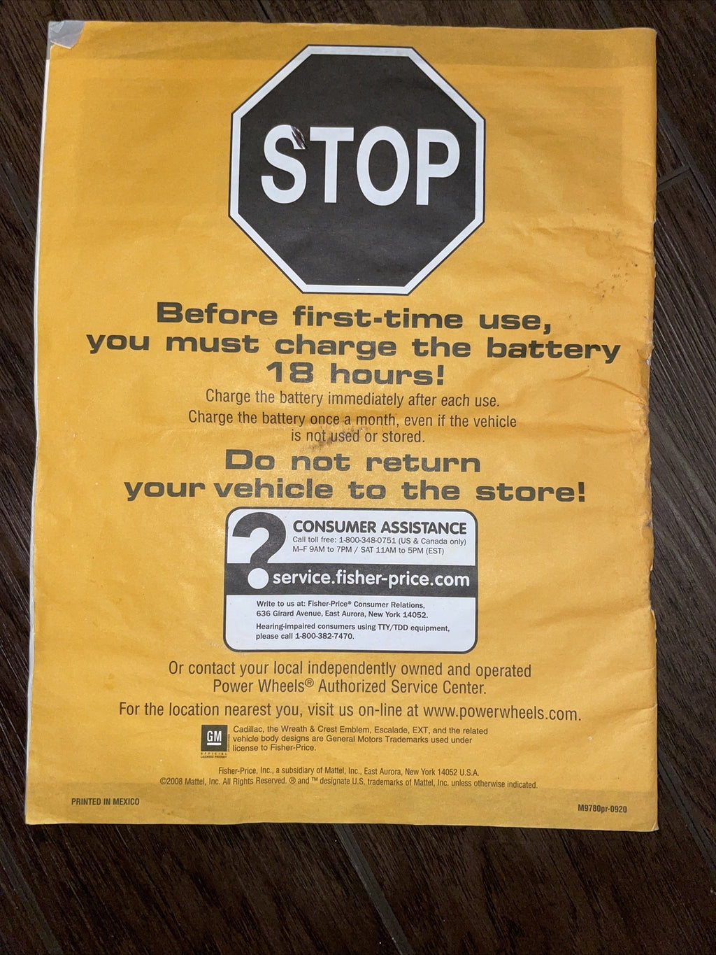 Cadillac Escalade Custom Edition Owner’s Manual by Power Wheels