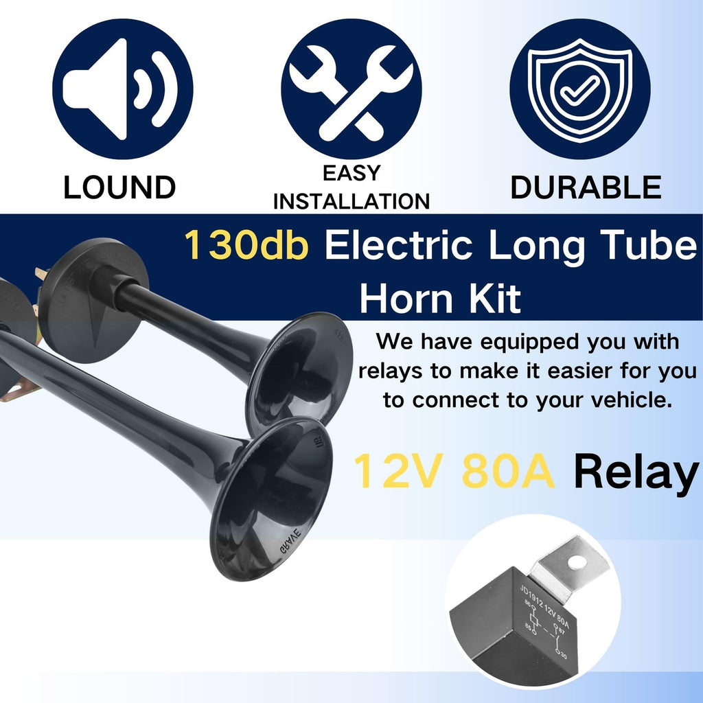 Ignite your driving experience with the powerful roar of this loud car horn, designed to command attention and keep you safe on the road. Imagine cruising confidently, knowing your presence is announced with a thunderous 130 decibel blast that cuts through even the noisiest environments. This set features two trumpet-style speakers crafted from upgraded, high-quality materials that deliver a sharp, clear sound, ensuring you’re heard loud and clear wherever you go.