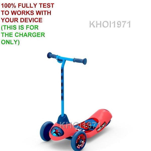 - Custom-made charger tailored for the Pulse Marvel Ultimate Spider-Man Safe Start 3-Wheel scooter