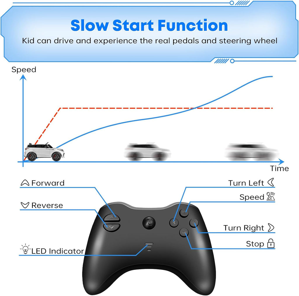 - Dual Control Modes: Let your child take the wheel in manual driving mode, or switch to the parent remote mode when you want to guide, steer, and stop with a simple Bluetooth remote. The one-to-one pairing ensures your commands always have first priority, keeping your little driver safe.