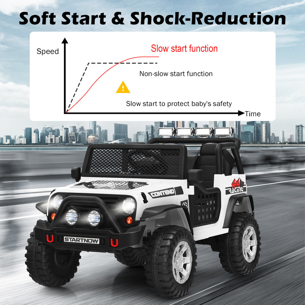 - Interactive Entertainment System: Flashing headlights, roaring engine sound effects, an onboard MP3/USB input, built-in radio, horn, and connector cable mean every ride is an all-in-one mobile party.