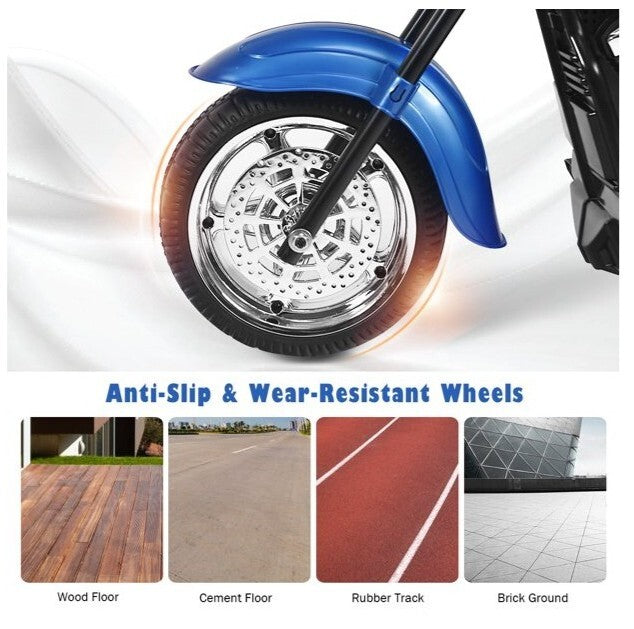This isn’t just any ride-on vehicle. It’s a chopper-style motorcycle that stands out with a bold, attractive design that will captivate your child from the very first glance. The low-center-of-gravity three-wheel setup ensures a smooth, stable ride, giving parents peace of mind while kids enjoy confidence in their new truck-like ride-on.