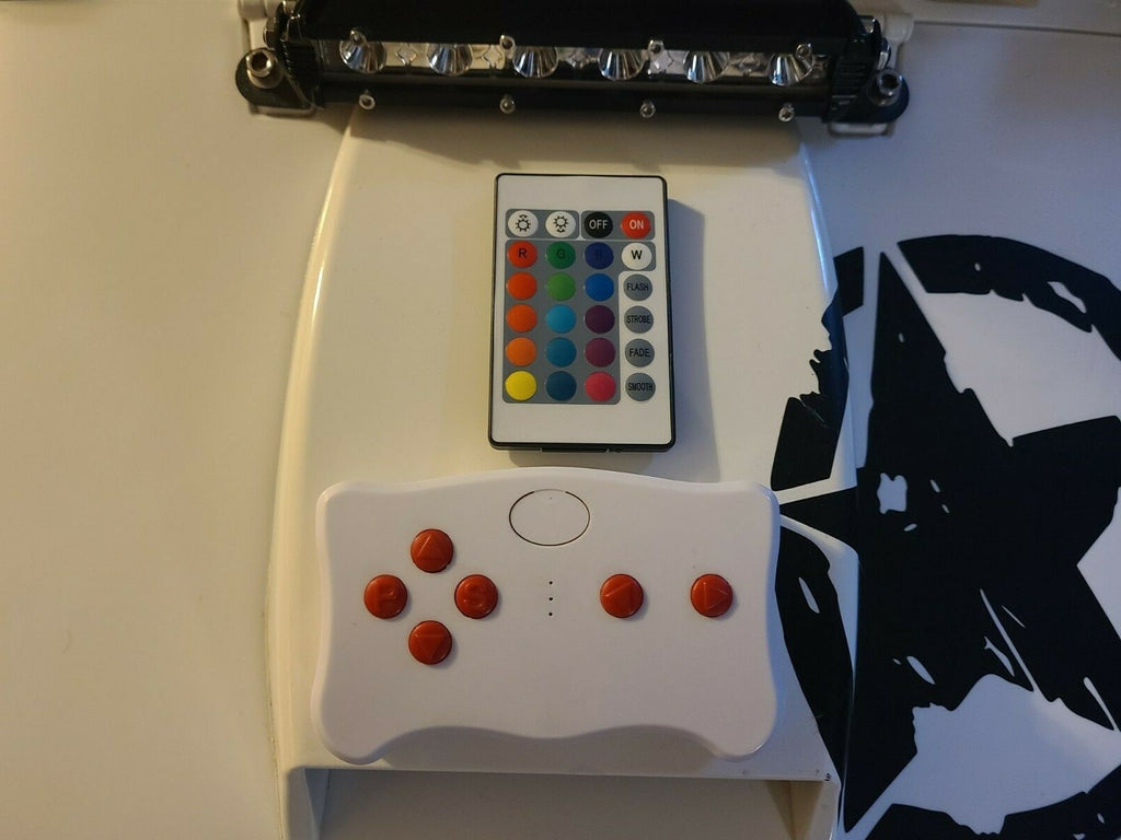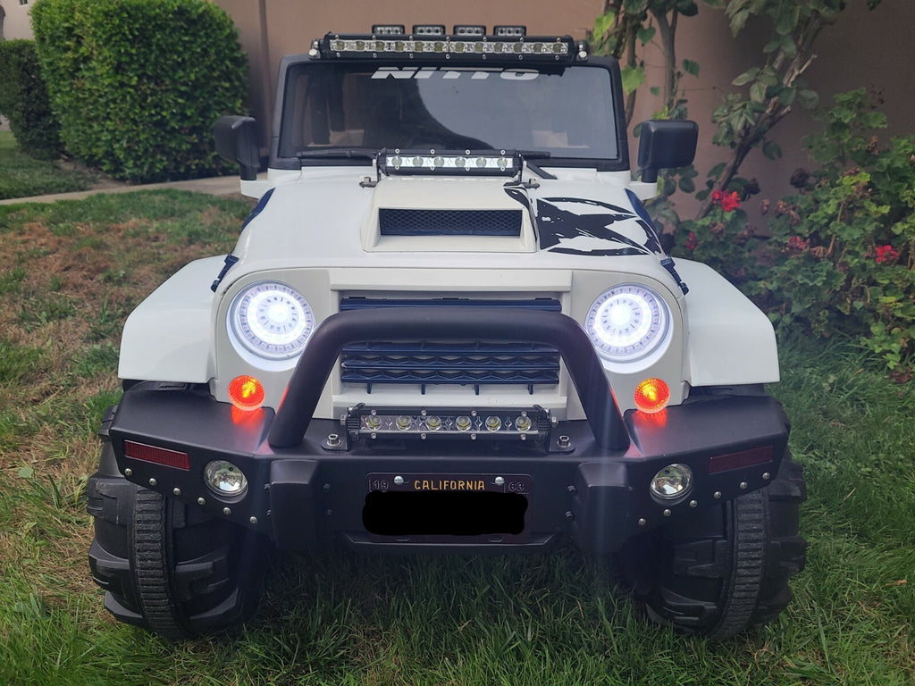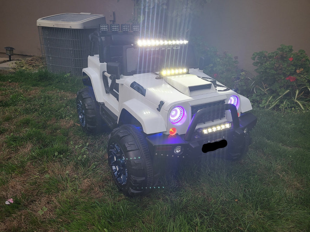 - Bright LED Lights: Head out on dusk patrols and nighttime adventures thanks to ultra-slim single-row LED light bars and 7" LED ultra-slim light bars. The glowing headlight halo rings and underbody RGB LED strip add a futuristic look that your child will adore.