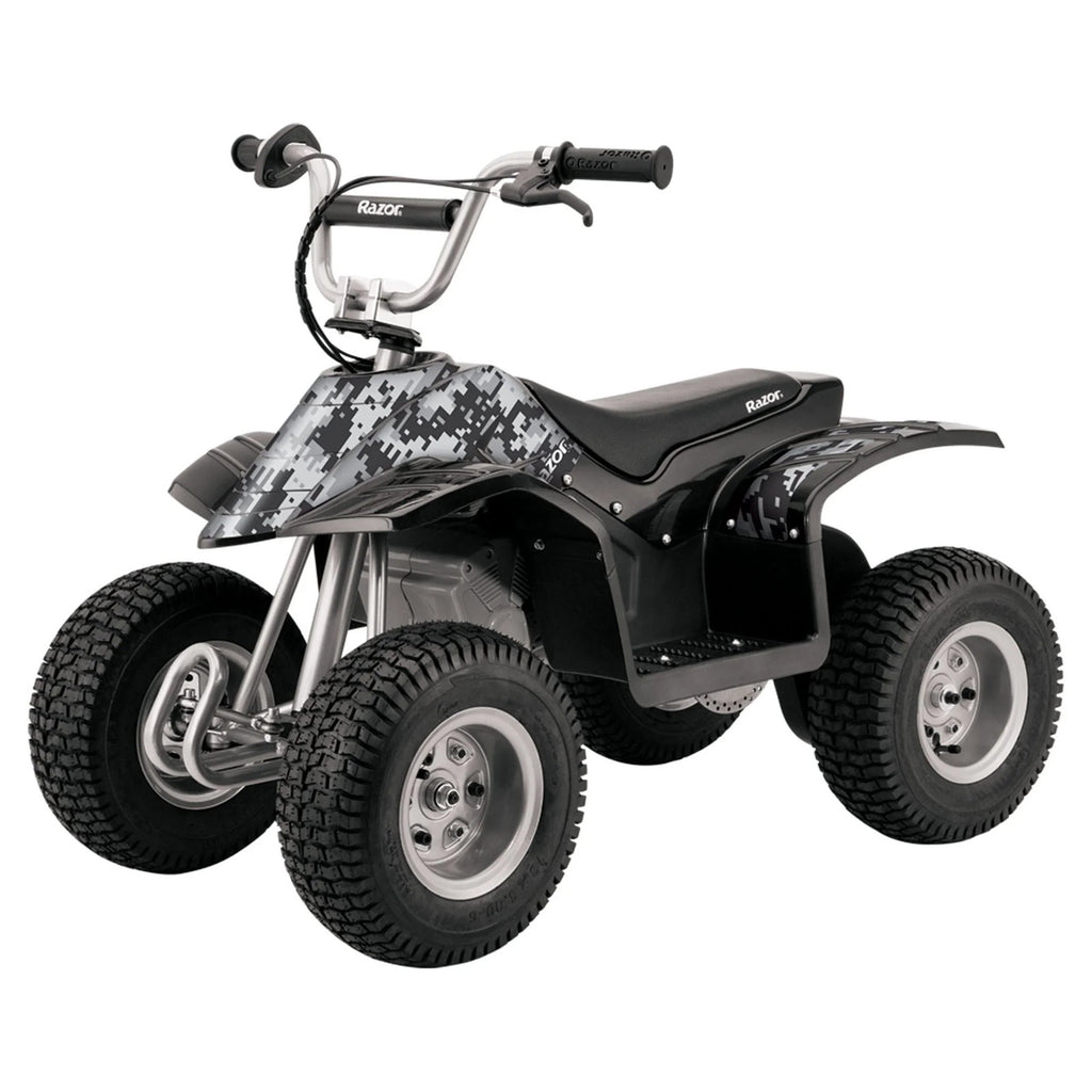 Get ready to ignite your child’s sense of adventure with the Dirt Quad 24V Battery-Powered Ride-On ATV in sleek Black. Designed for kids ages 8 and up, this single-seat ride-on delivers a thrilling off-road experience in a safe, scaled-down package. Built around a rugged tubular steel frame and 12” knobby pneumatic tires, it offers the perfect combination of durability and performance. Whether your young explorer is tearing through loose dirt, cruising around the backyard, or embarking on an epic backyard rally, this ride-on ATV will keep them entertained for up to 40 minutes on a single charge.
