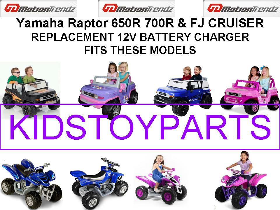 Ignite your child’s sense of adventure with the ultimate 12V ride-on charger designed specifically for their favorite power wheels trucks and cars. Whether your little one is cruising around in a Yamaha Raptor 700R Quad Runner, revving the Suzuki 450R Quad Runner, or exploring rugged terrains in their FJ Cruiser Jeep or Dumar Megatredz Grizzly, this charger is the perfect companion to keep the fun rolling nonstop!