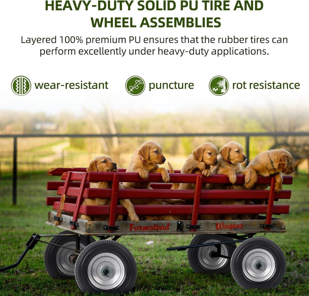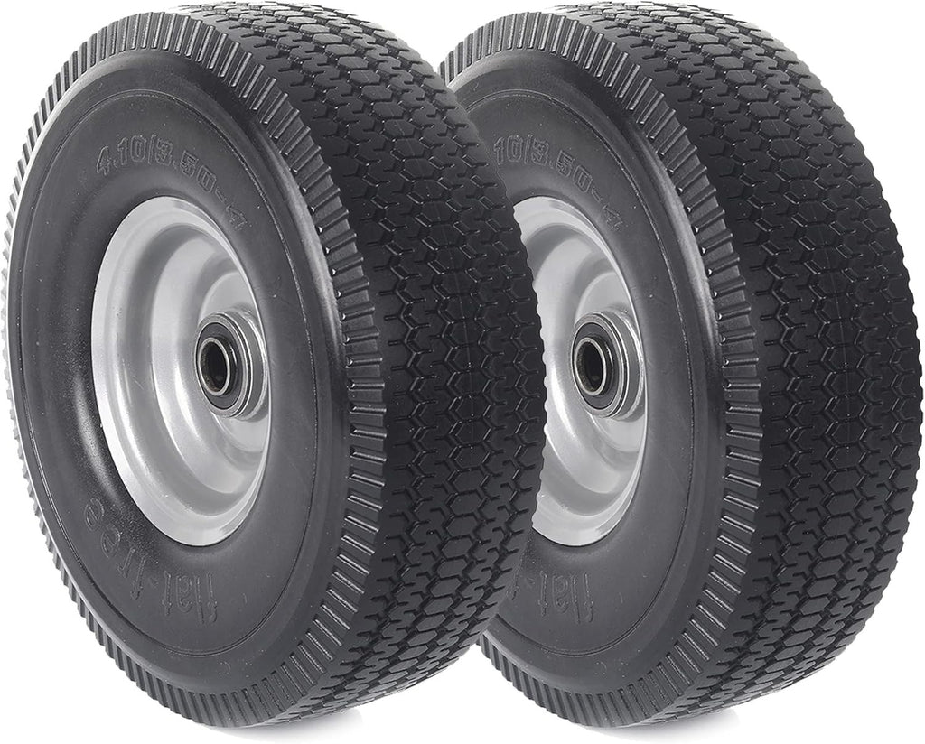 Step into a world of rugged reliability and unstoppable adventure with our Durable 10" Flat-Free Tire & Wheel Set — a heavy-duty 2-pack designed to transform your utility equipment into a powerhouse of performance. Whether you're maneuvering yard tractors, hauling with wagons, or pushing hand trucks, these 10-inch solid tires and wheels are engineered to deliver unmatched durability, versatility, and peace of mind for all your tough outdoor tasks.