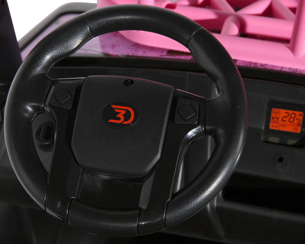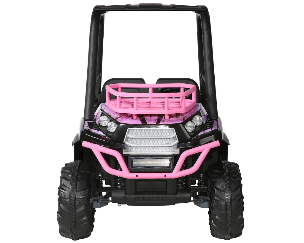 Who says outdoor gear has to be dull? Dynacraft’s custom Realtree pink camouflage wrap transforms this ride-on into a style statement. The vibrant pattern blends the thrill of real hunting camo with a playful pink palette that kids adore. Whether they’re racing through the woods or hosting a backyard safari, this UTV stands out in every setting.