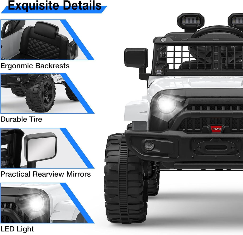 Adventure-Ready 12V Ride-On Truck for Kids with Parent Remote Control, Spring Suspension & LED Lights – White