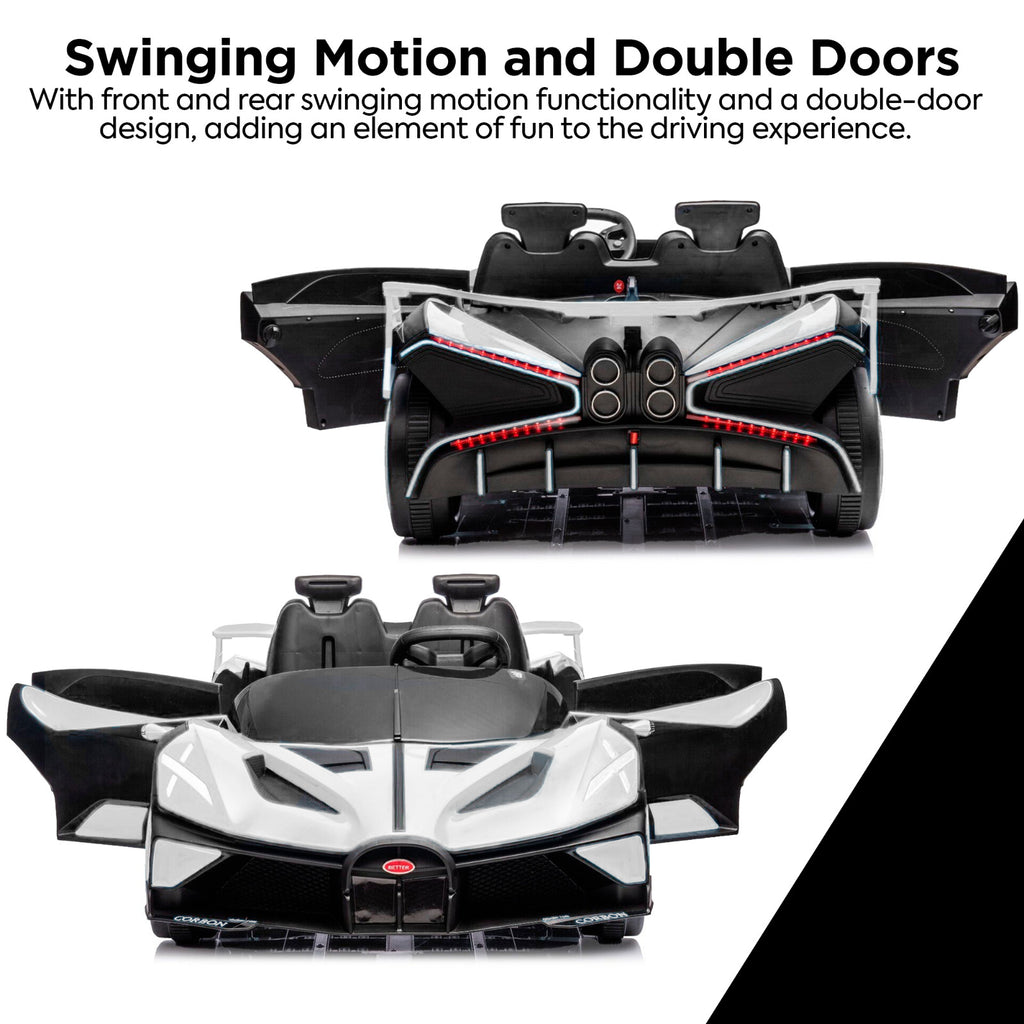 - Realistic Bugatti-Inspired Design: Sleek body lines, signature grille details, and functional LED headlights mimic the look of a true supercar.