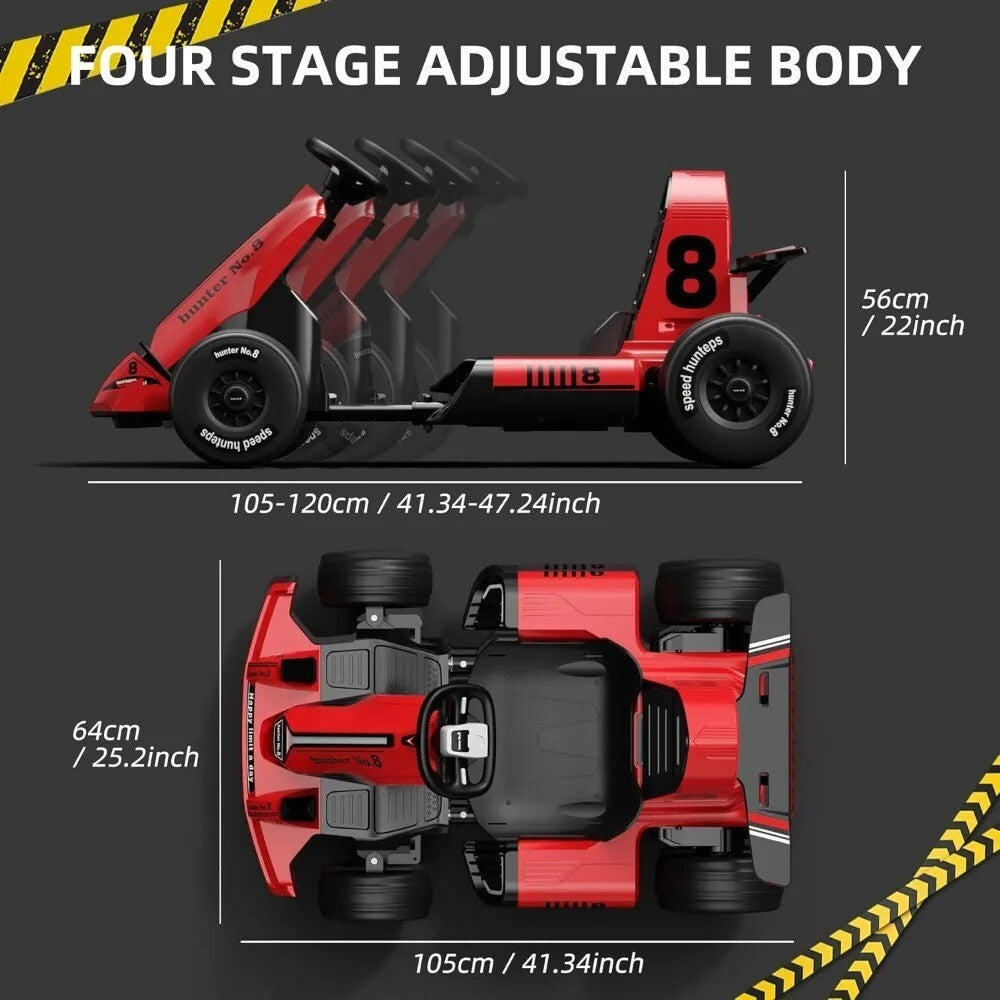 When it comes to size, this kart is thoughtfully designed to grow with your child. The adjustable seat length adapts as they get taller, ensuring a comfortable and ergonomic seating position that supports longer rides. Its dimensions balance agility with stability, giving kids the freedom to navigate twists and turns with ease while keeping the ride manageable and safe.