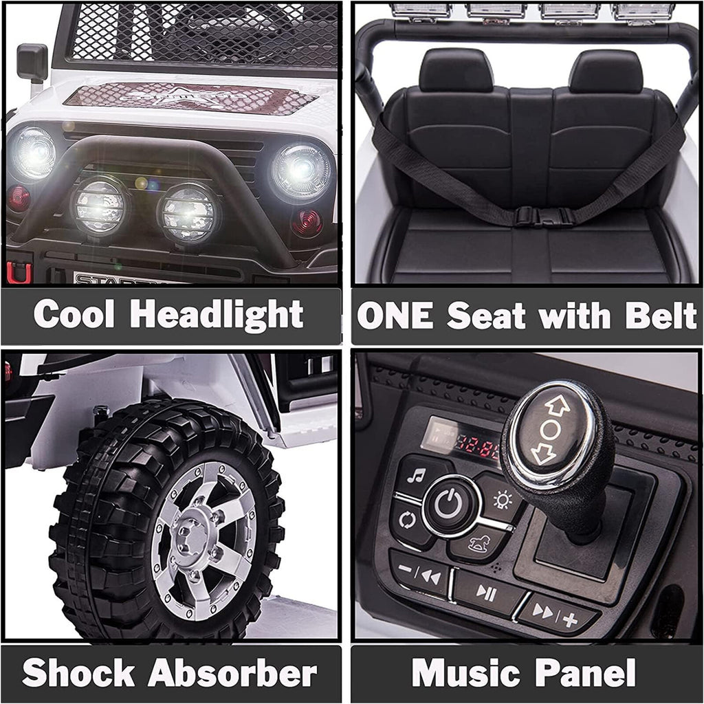 Designed with attention to every exciting detail, the ride-on truck features double doors secured with magnetic locks—adding a realistic touch and easy access for your young driver. Bright LED headlights and taillights illuminate the path ahead, making rides at dusk or cloudy days more thrilling and visible. Your child will love the authentic look and feel of this car, sparking their imagination as they pretend to embark on epic journeys or play rescue missions.