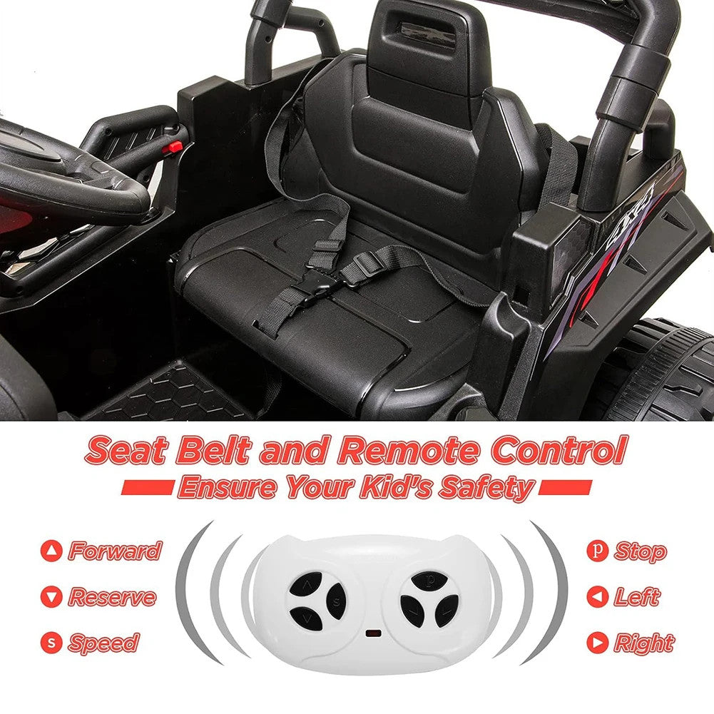 - Safety-First Features: Certified to rigorous ASTM F963, CPSIA, and CPC standards, this ride-on offers peace of mind with slow-start acceleration, priority remote override, reliable spring suspension wheels, lockable doors, and an adjustable seat belt to keep your mini driver secure.